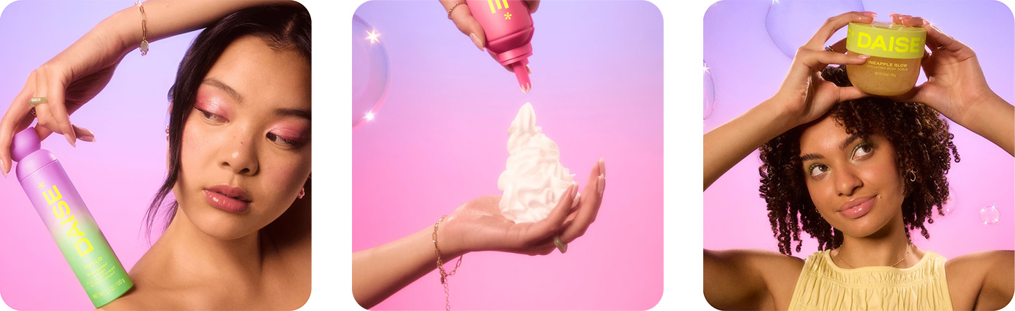 DAISE představuje hravou a expresivní řadu tělové péče a vůní, kde každá vůně odpovídá vaší náladě. Značka je cruelty-free a formulovaná podle „Clean Promise“ – bez řady nežádoucích složek.