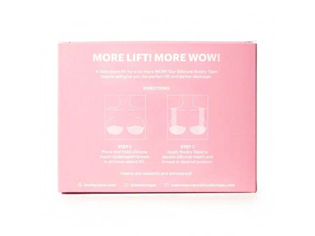 Ujistěte se, že je vaše pokožka čistá a suchá, bez olejů a krémů. Vložte silikonové vložky do podprsenky nebo je připevněte pomocí Booby Tape pro extra podporu. Upravte podle potřeby pro dosažení požadovaného tvaru a pozvednutí.