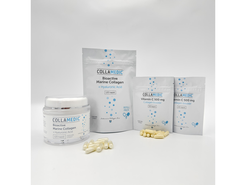 - 120 ks COLLAMEDIC kapslí s kyselinou hyaluronovou a kolagenem v sáčku - náhradní plnění do dózy