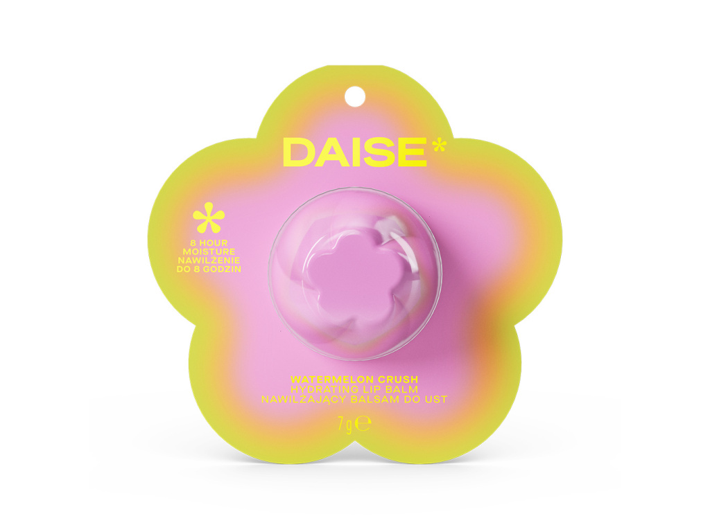 Daise Hydrating Lip Balm Watermelon Crush je spolehlivým pomocníkem pro každodenní péči o rty. Dopřejte si jemné, hydratované rty s osvěžující melounovou vůní kdykoli během dne.