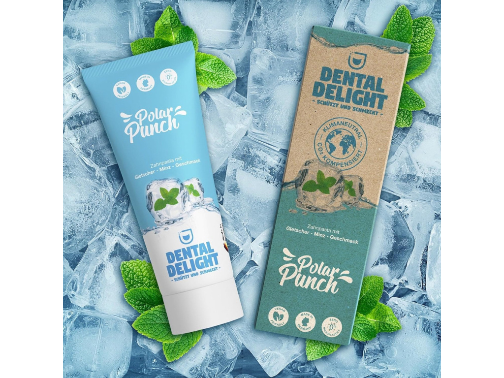 Dental Delight Polar Punch je veganská zubní pasta s intenzivně svěží mentolovou chutí, která zanechá ústa dokonale čistá a dech dlouhodobě svěží. Vyvinutá bez mikroplastů a s ohledem na udržitelnost představuje každodenní péči o ústní hygienu pro celou rodinu.