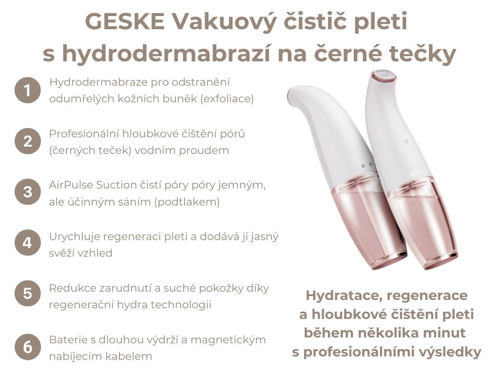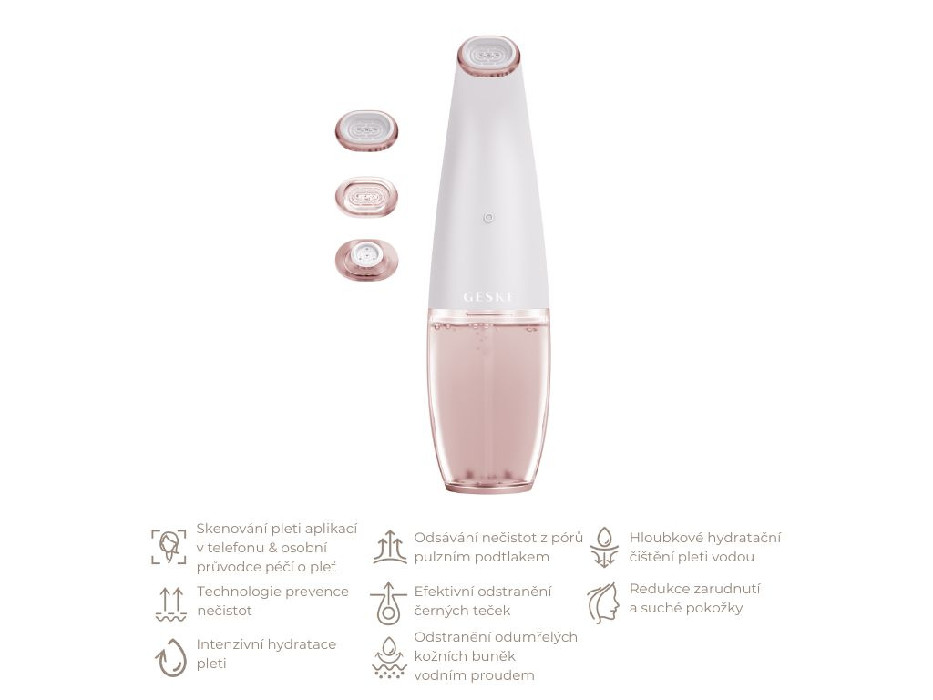 GESKE Aqua-Stream Face Cleanser 8 in 1 – Hydrodermabraze, přístroj na černé tečky s vodním proudem a podtlakem