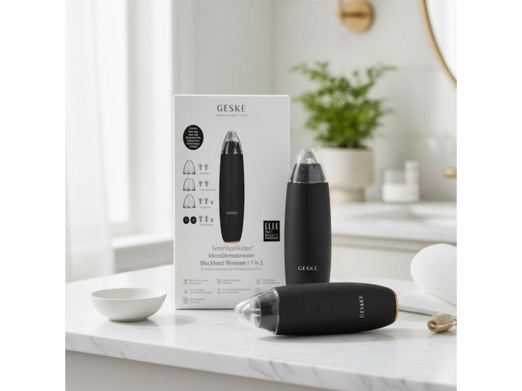 Geske Vakuový čistič pleti s mikrodermabrazí je ideální pro odstranění černých teček a dosažení bezchybné pleti. Tento 7v1 přístroj nabízí komplexní péči o pleť v pohodlí vašeho domova. Díky technologii SmartAppGuided™ můžete snadno naskenovat svůj obličej a získat personalizovanou kosmetickou rutinu. Dosáhněte krásné a zářivé pleti s Geske!