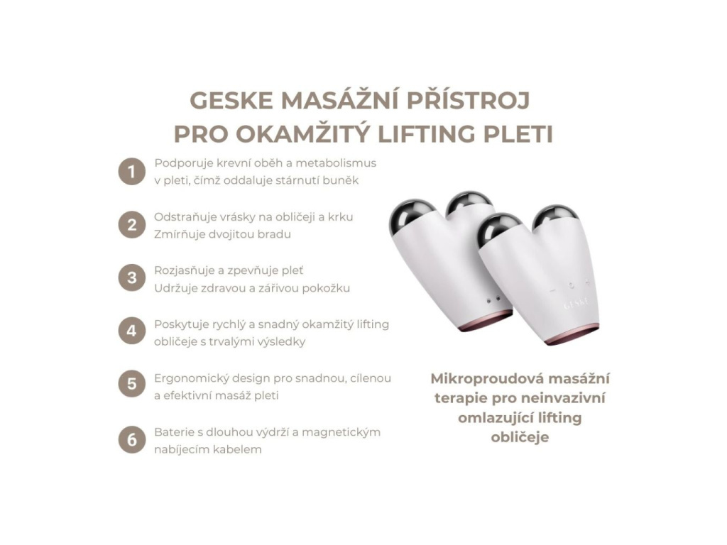 GESKE MicroCurrent Face-Lifter | 6v1 – Mikroproudový masážní přístroj na obličej pro lifting pleti (myostimulace)