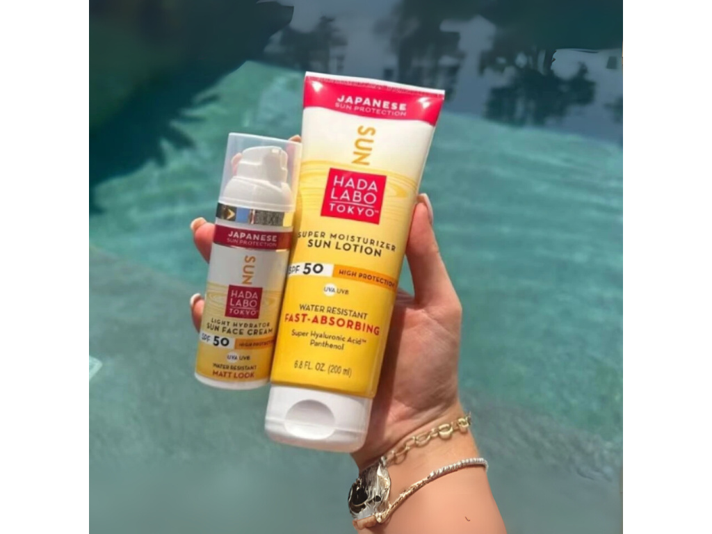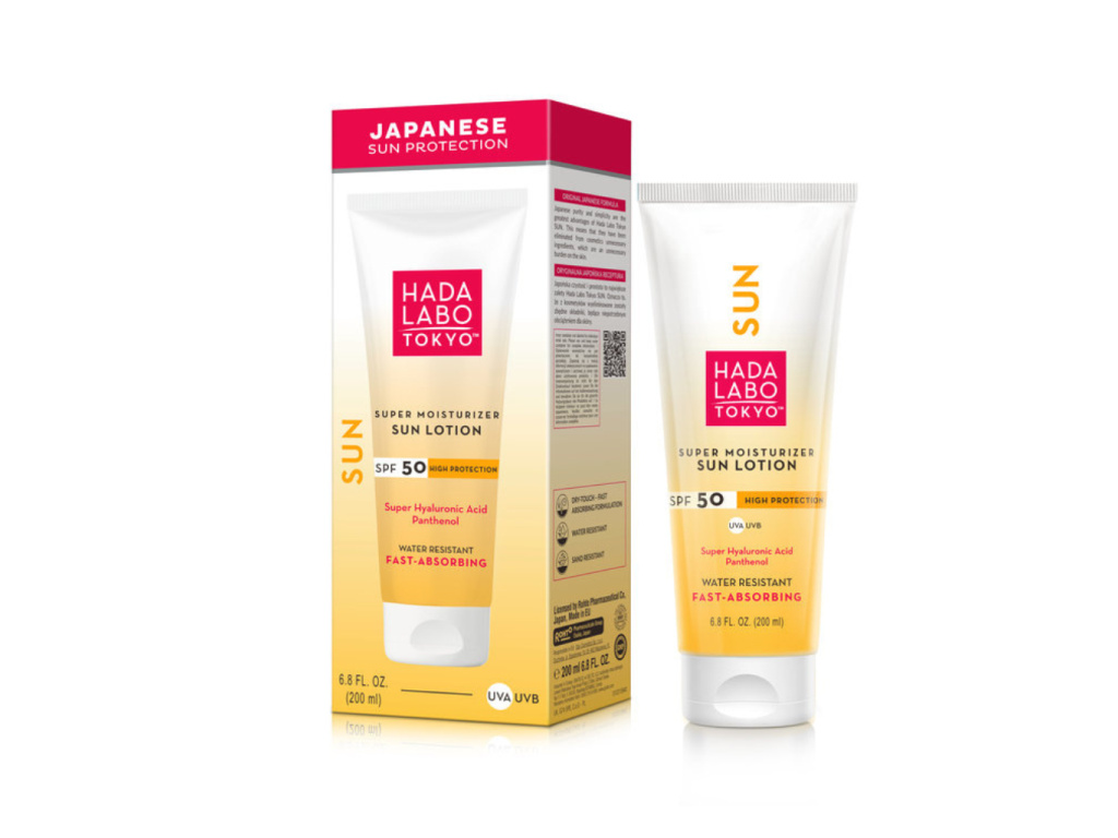 Hada Labo Tokyo SUN SPF 50 – lehké voděodolné mléko na opalování, které se rychle vstřebává, nelepí a zanechává hebkou pokožku. Zamilujte si intenzivní hydrataci a ochranu pokožky před sluníčkem. Obsahuje unikátní komplex 7 druhů kyseliny hyaluronové pro hlubokou péči o pleť.