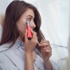 - Zmáčkněte měkkou část tuby očního krému a vytlačte malé množství krému. Ten naneste aplikátorem na pleť.