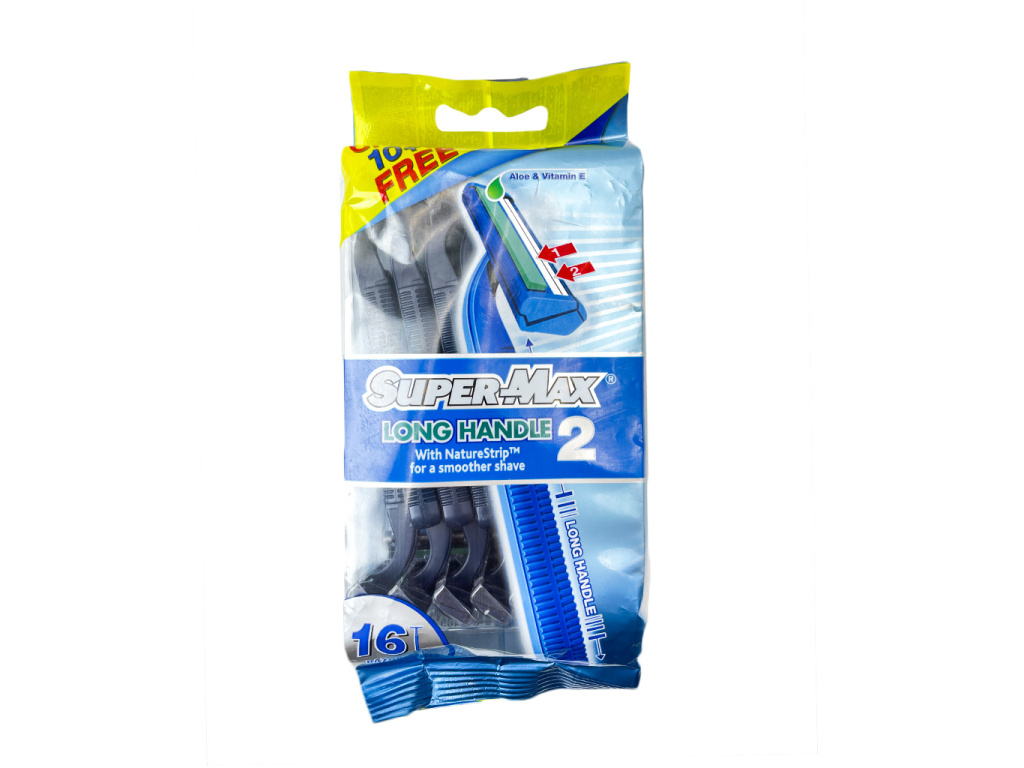 Super‑Max Long Handle Disposable Razors – 10 kusů + 6 zdarma